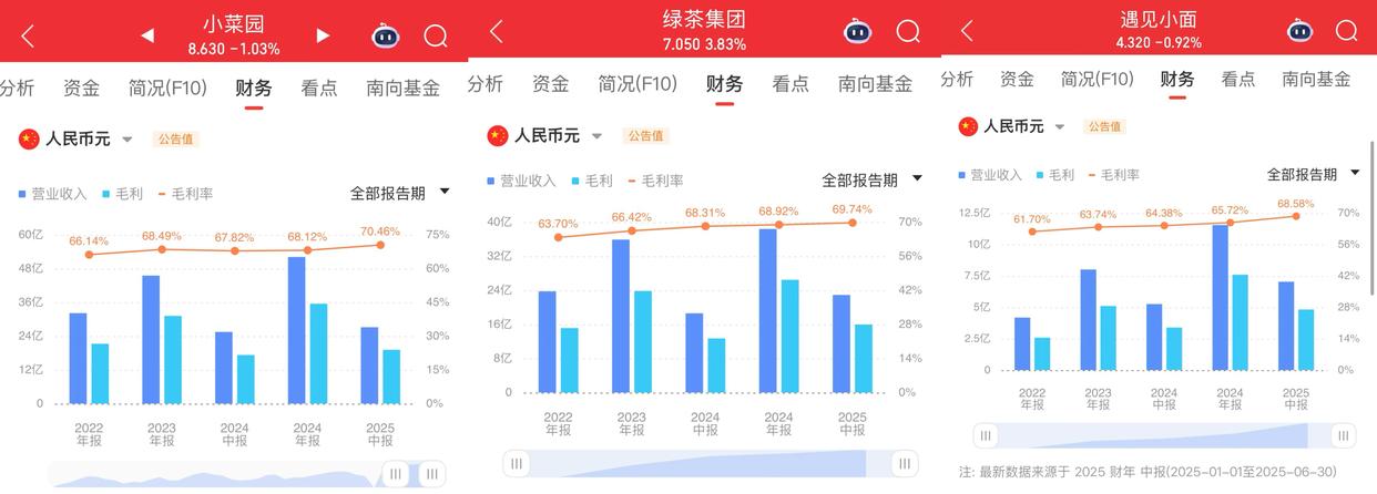做为对比,成功登岸港股的中式快餐品牌小菜园2022年至2024年间,毛利率别离为66。14%、68。49%及68。12%,客岁上半年一度冲破70%,达到70。46%。定位于休闲中式餐厅品牌的绿茶集团2022年至2024年间,毛利率别离为63。7%、66。42%及68。92%,客岁上半年达69。74%,“中式面馆第一股”碰见小面2022年、2023年、2024年及客岁上半年毛利率别离为61。7%、63。74%、65。72%及68。58%。三家毛利率均处于60%程度线之上,老乡鸡毛利率则远低于同业。